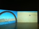 They have a work by Kate Gilmore, Break of Day, was a performance in the Museum in 2010, that was filmed and is now a video. The single channel video is considered to be a work, accessioned into the museum’s collection. Which I thought was an intriguing way to ‘collect’ performance, and crossing into media art. An audio work by Julianne Swartz fills an entire gallery. Terrain is a 12 channel audio work of people whispering ‘sweet nothings to their loved ones. The visual component of the installation’s wires are harsh and industrial in comparison to the sounds. My favorite of the works is an installation by William Lamson, A Line Describing The Sun, where Lamson used a lens to burn a hole across the desert, documenting it in a majestic and striking two channel video work in a scale large enough to encapsulate the viewer.